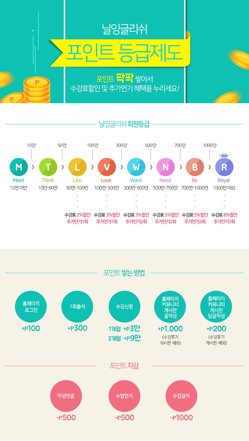 수강료 할인율 적용 및 추가 무료 연기 혜택 제공 ※ 포인트는 등급 및 혜택 적용 용도로 사용됩니다.