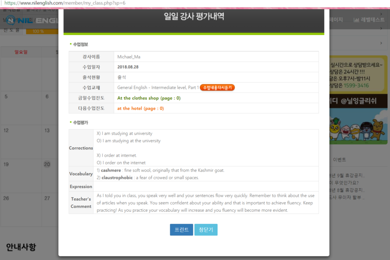 여러분 닐잉글리쉬 2주차 수강을 마치고 돌아왔습니다! 시간이 참 빨리 가는 것 같아요 ㅎㅎㅎ 수강 2주차에는 화,목 20분 수업과 Micheal 선생님으로 수업을 진행했어요 ! ![]() 홈페이지에 들어가시면 시간과 선생님을 확인 하실 수 있답니다 오른쪽에 평가? 같은게 돼있는데 저는 모두 100을 드리고 싶어요 ! 말하는 중간중간 틀린게 있으면 바로 잡아주고, 모르는게 있으면 세세히 알려주는 부분이 정말 좋았던 티쳐 입니다 ㅎㅎ ![]() Micheal Teacher 도 이렇게 교재를 띄워 놓고 수업을 진행하십니다 따로 녹화 할 수 있도록 링크를 보내 주셔서 나중에 볼 수 있도록 권장하셔요 ! 위 사진은 녹화된 영상을 캡쳐한 것 입니다 (근데 내 목소리 듣기 싫어서 다시 보기 않기는 하지만 다시 본다면 당연 도움이 되겠죠? ) 교재를 기반으로 수업을 하긴 하지만 어떤 주제가 나오면 그것에 대해 프리 토킹을 할 수 있다는 것이 저는 정말 마음에 들었어요 ! 저한테 필요한 건 말하는 것인데 수업을 하다보면 자연스럽게 대화가 이어진다는 것이 많이 도움을 줬던 것 같아요 ! ![]() 수업이 끝나면 이렇게 작성을 해주시는데 다시 한번 내가 부족한 부분을 알게 해 주는것 같아요 !! 저는 조사를 정말 안쓰더라구요 너무 어려웡 ㅜ-ㅜ 2주차 수강후기 이번 마이클 티쳐는 꼼꼼히 제가 부족한 부분을 집어주시고 중간중간 자신의 얘기도 해가면서 친근하게 수업하신 점이 좋았습니다. 2주차 수강을 하고 느낀점은 솔직히 별로 발전하지 못할 것 같았던 저의 영어 말하기에 자신감이 생겼고, 조금은 어떻게 말을 해야 할 지 알았다는 것입니다. 뭐든 꾸준히 하면 될 것 같다는 생각이 들었습니다. 다음주는 어떤 선생님과 어떤 수업을 할 지 기대가 됩니당 ㅎㅎ ![]() 더 많은 정보는 이곳에서 ~~~ < 출처 : https://m.blog.naver.com/yumyum_chopchop/221349911546 > |